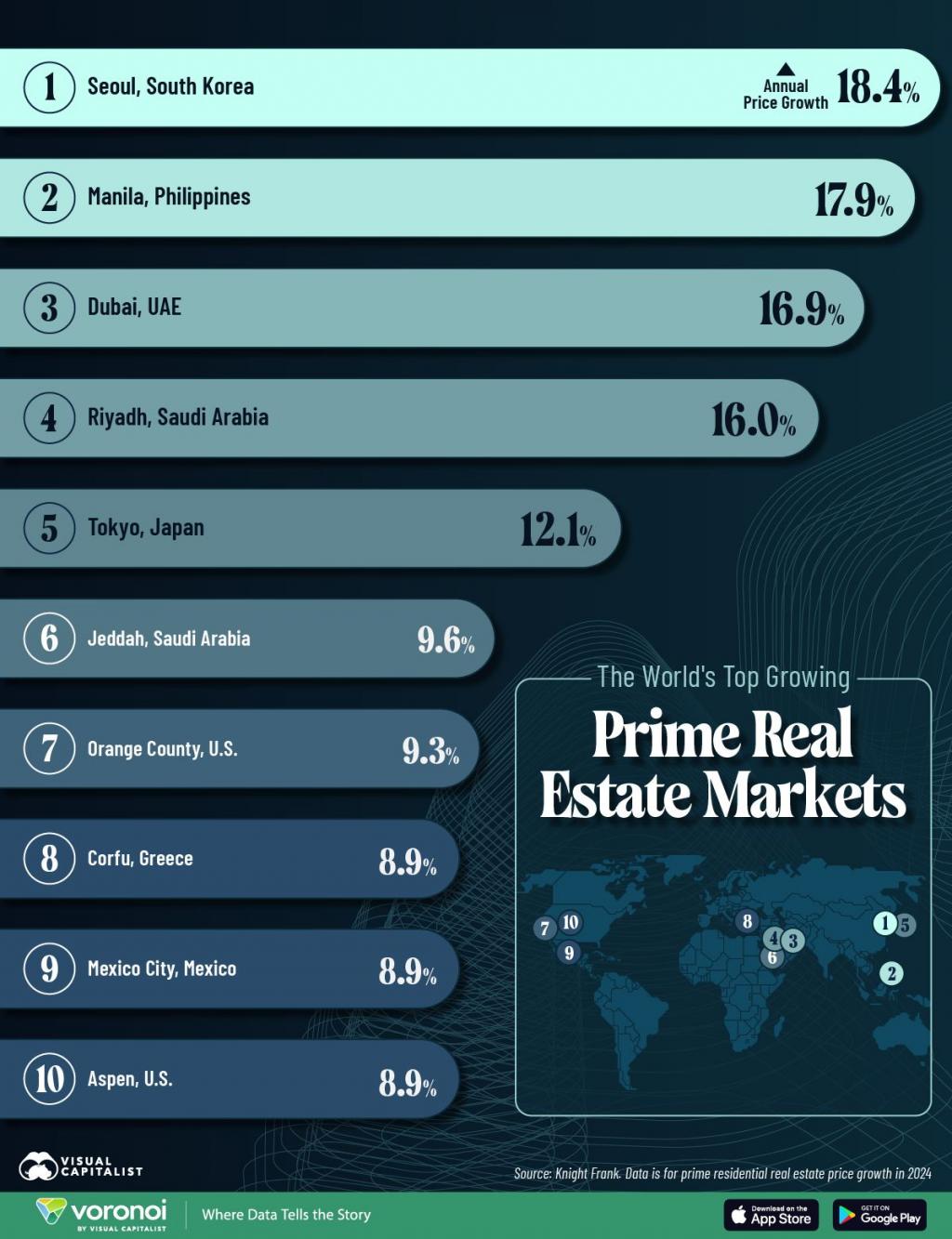 Im Jahr 2024 dominierten Asien und der Nahe Osten die heißesten Märkte für Luxusimmobilien, wobei sechs der zehn größten Städte das schnellste Preiswachstum verzeichneten.